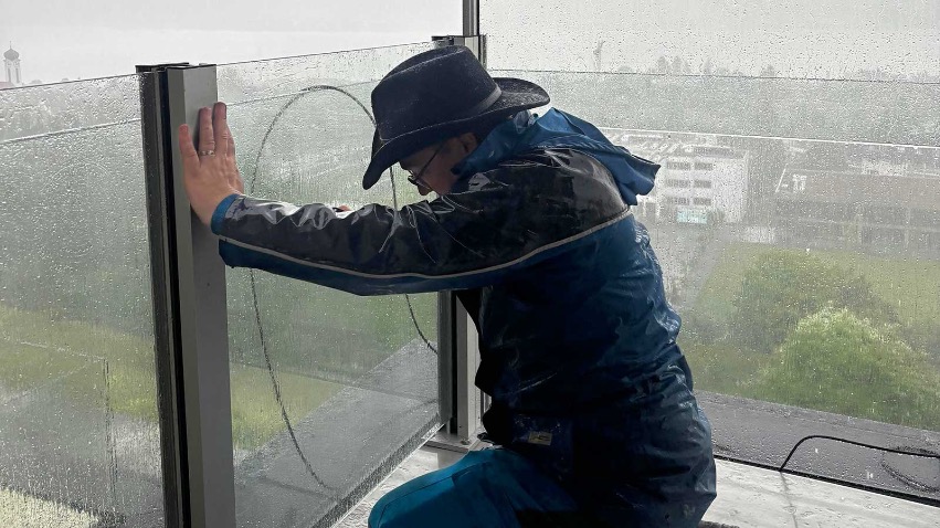 Auch wenn das Wetter herausfordernd war - wir haben wieder einmal Windschutz von SlideGlass® montiert und damit unsere Kooperation mit einem Schweizer Innovationsunternehmen gestärkt.