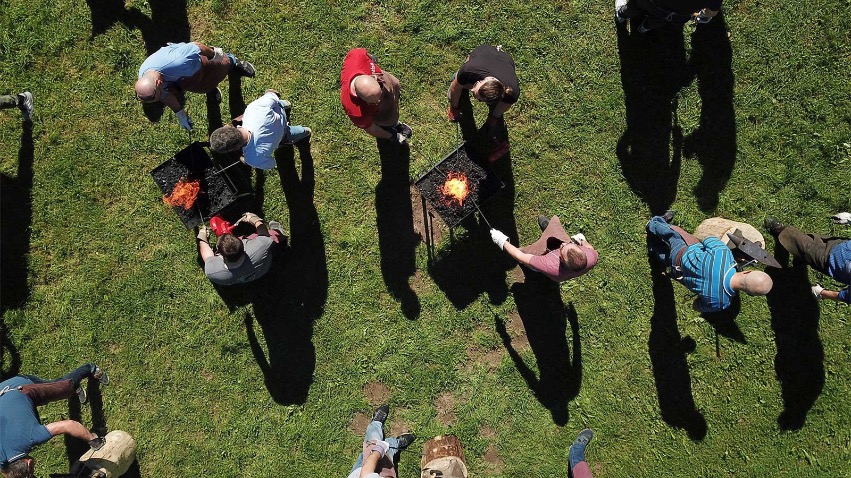 Am 9. August haben wir unseren zweiten "Pop Up" Schmiede-Event veranstaltet, zu dem sich auch Einzelpersonen und kleine Gruppen anmelden konnten. In atemberaubender Atmosphäre und strahlendem Sommerwetter wurde über mehrere Stunden unser wertvolles Handwerk weitergegeben. Jeder Teilnehmer und jede Teilnehmerin lernten mit Hammer und Amboss umzugehen und schmiedeten ihren ganz individuellen Grillspiess.