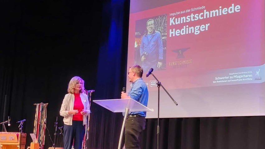 Unter dem Motto „Schwerter zu Pflugscharen“ fand am 1. November die "StopArmut" Konferenz in Winterthur statt. Unser Geschäftsführer Daniel Hedinger durfte als Gastredner vor Ort nicht nur sprechen, sondern stellte in einer einmaligen Aktion mit den Teilnehmenden „P E A C E“ Anhänger aus leeren Patronenhülsen her. So wurde das Konferenzmotto auf ganz praktische Weise im Rahmen unseres Handwerkes umgesetzt.